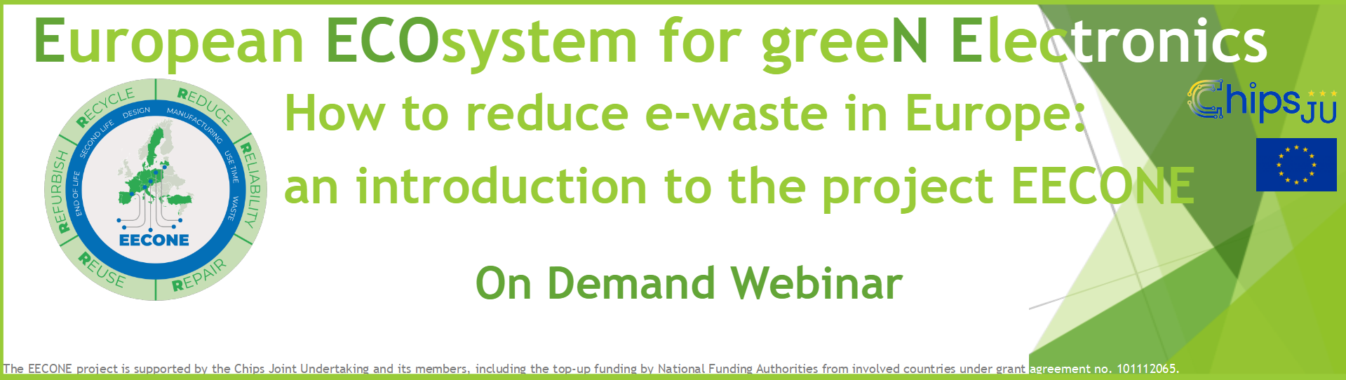 EECONE project aims to deliver innovative design and technological solutions for more sustainable electronics. With this introduction webinar, you will learn more about what our objectives are and how we are organized to fulfill them. Register now !